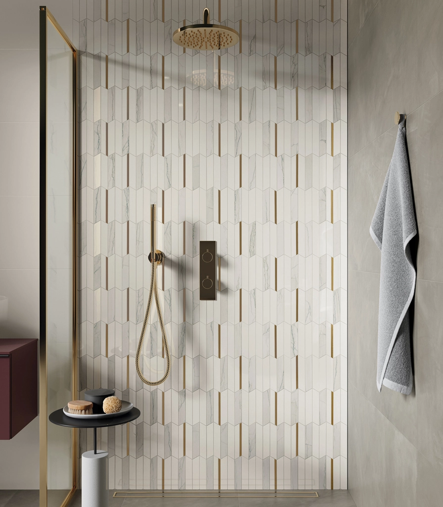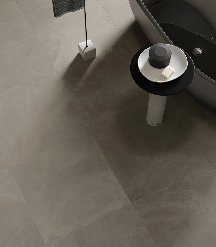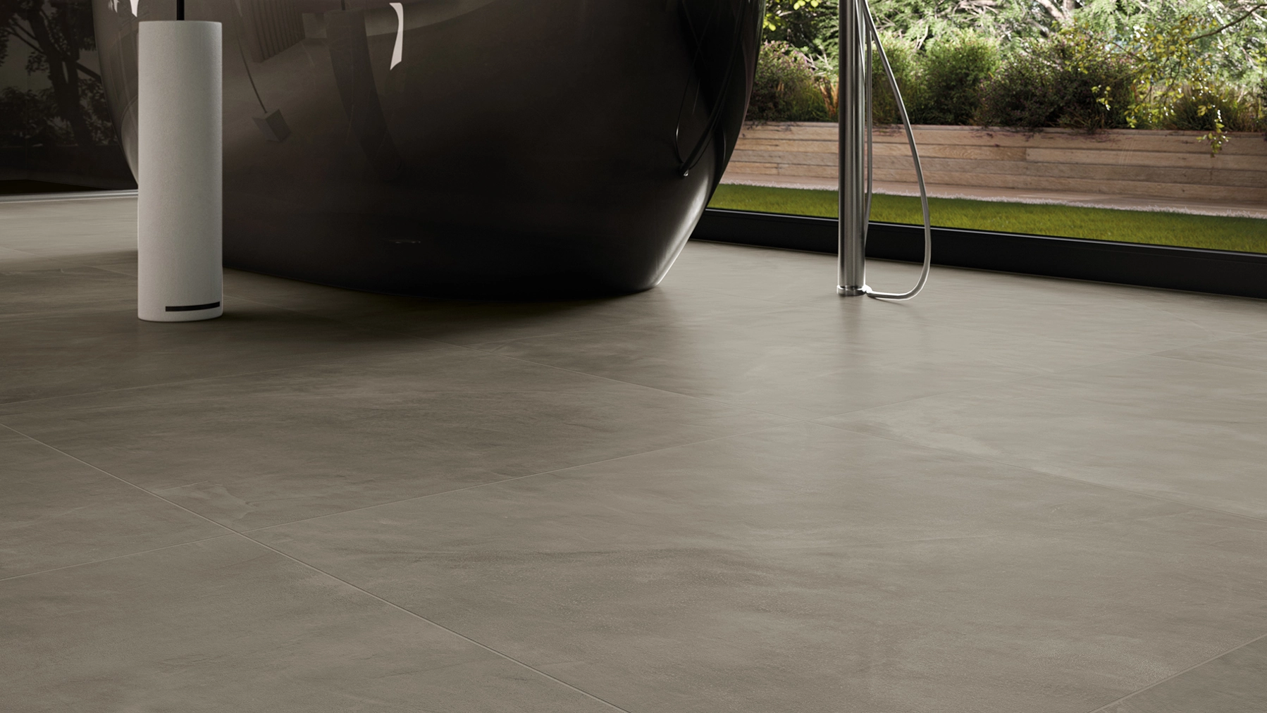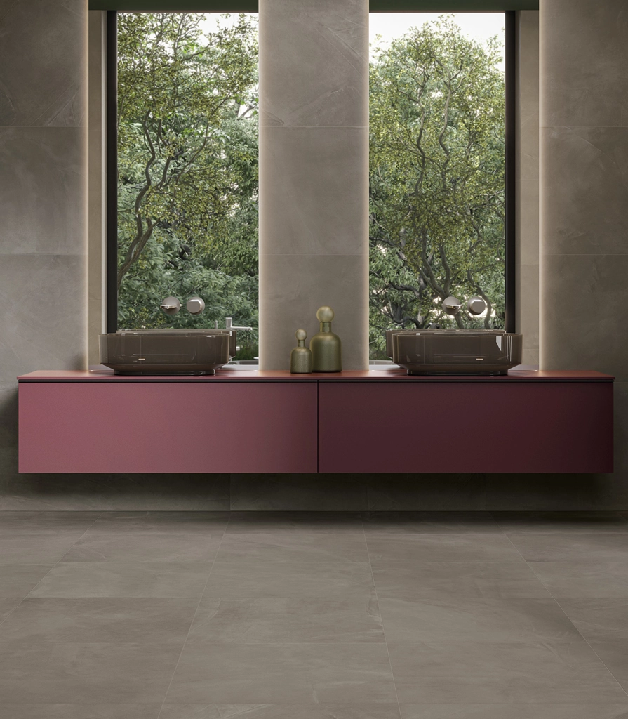 Dal pavimento alla parete doccia, Iron è il protagonista indiscusso di questo elegante progetto bagno. Una cromia unica che trova nella luce l’alleato ideale per sottolineare il dinamismo dell’effetto resina.