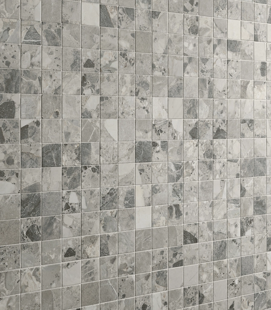 In questa hall, l’agglomerato Stone Grey è utilizzato a tutta superficie. Una scelta ambiziosa, ideale per dare forza e personalità a un contesto commerciale in una connotazione estremamente maschile.