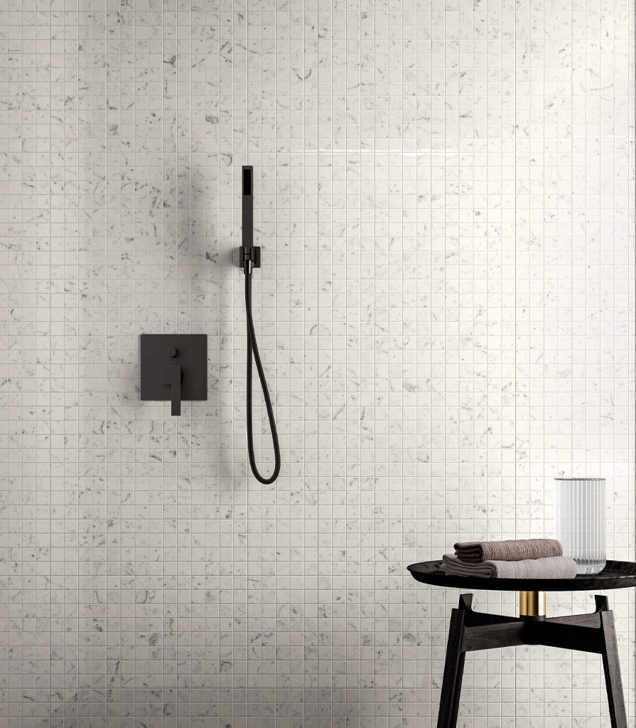 Элегантный дизайн ванной комнаты в стиле современная классика будет актуален долгие годы. Для оформления такого интерьера отлично подойдет глянцевая белая плитка под мрамор: керамогранит в цвете Каррара для пола и керамическая плитка Каррара 25x75 для стен. Чтобы разнообразить интерьер и при этом сохранить монохром, использовали декоры в цвет фоновой плитки. Глянцевая мозаика Каррара Мозаика Люкс 29,2x29,2 на стене в душевой добавляет динамики в белоснежный интерьер, а изящный декор Каррара Вставка Голден Лайн 25x75 подчеркивает стильный дизайн и утонченный вкус владельцев квартиры.