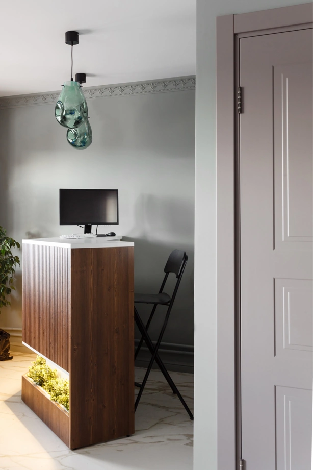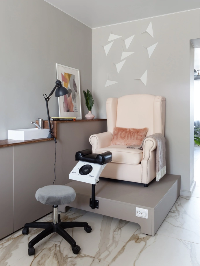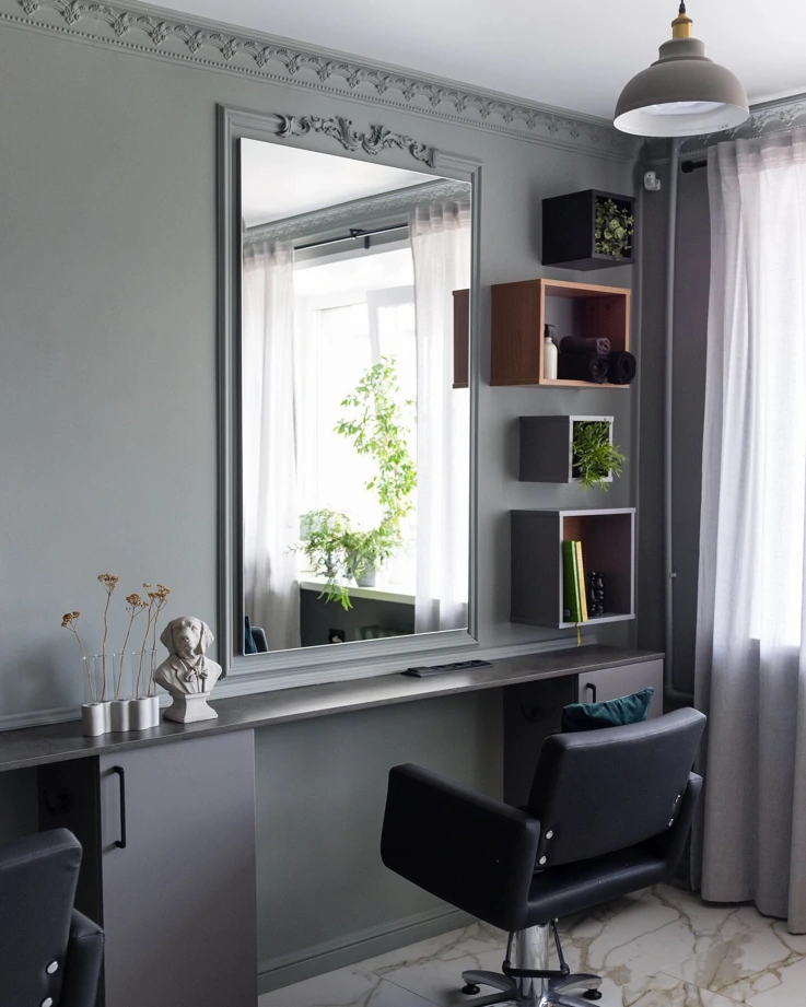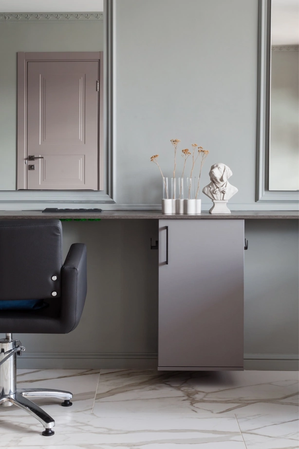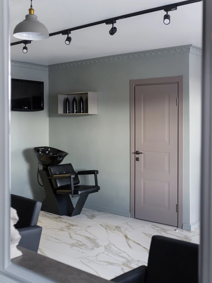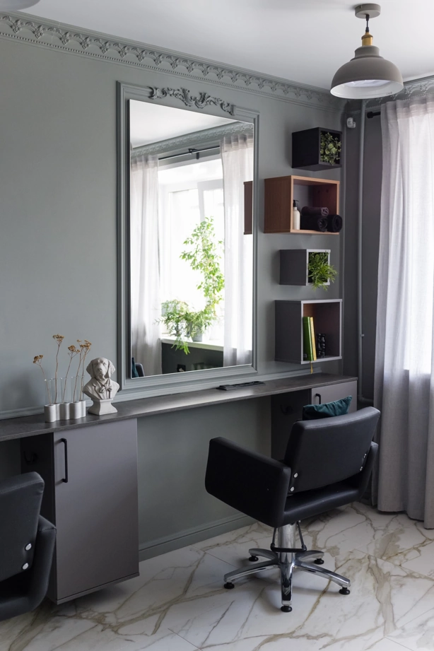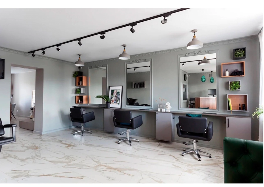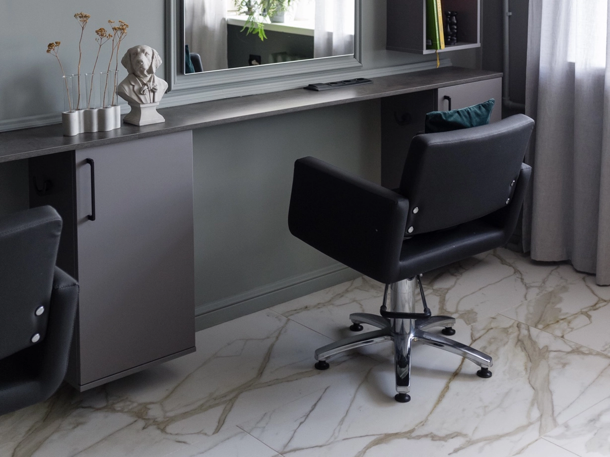 Он не только задал стиль и настроение всему интерьеру, но и прослужит владельцам студии красоты долгие годы как надежное напольное покрытие с высоким показателем износостойкости.