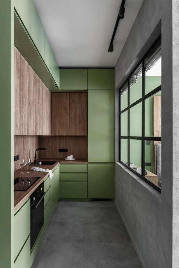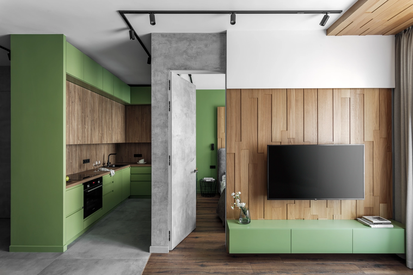 На зеленый цвет в интерьере вдохновил сам жилой комплекс – ЖК BOTANICA, расположенный в непосредственной близости к Ботаническому саду.